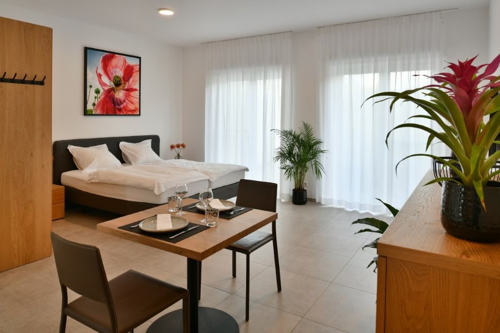 Direkt gegenüber befindet sich das K-Restaurant, das unsere Gäste mit kulinarischen Highlights verwöhnt, perfekt für entspannte Abende ohne lange Wege.